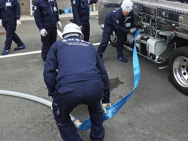 11月18日(火)、「応急給水訓練」を九条本部で開催いたしました。九条本部には、災害時に市民の皆さまに給水ができる「応急給水槽」が設置されていることから、災害に備えて「応急給水槽」「仮設給水槽」「仮設給水栓」「加圧式給水車」の運用訓練を行っています。今後も、職員一同、災害に対しての意識の向上に努めてまいります。