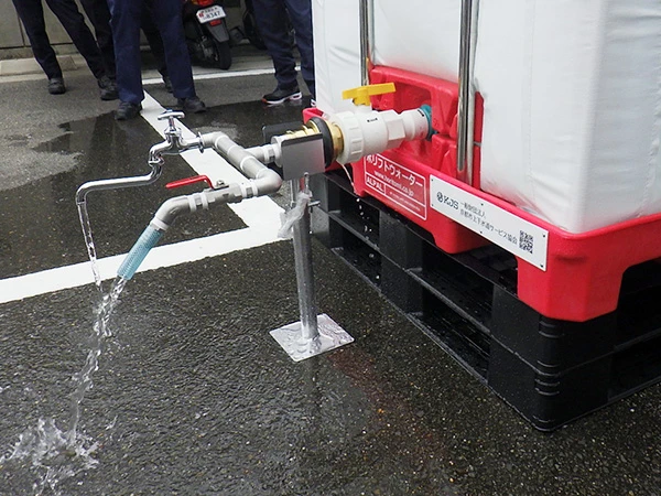 11月18日(火)、「応急給水訓練」を九条本部で開催いたしました。九条本部には、災害時に市民の皆さまに給水ができる「応急給水槽」が設置されていることから、災害に備えて「応急給水槽」「仮設給水槽」「仮設給水栓」「加圧式給水車」の運用訓練を行っています。今後も、職員一同、災害に対しての意識の向上に努めてまいります。